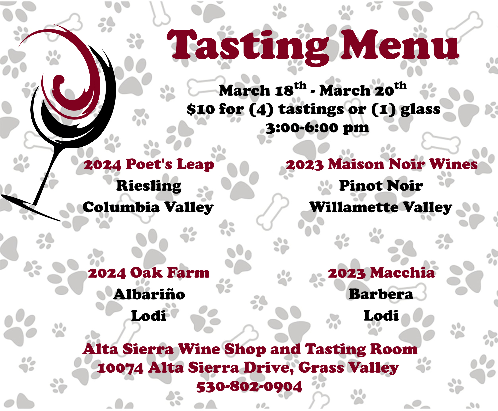 So, stop in, taste, visit with new friends, and maybe even find your new favorite wine.