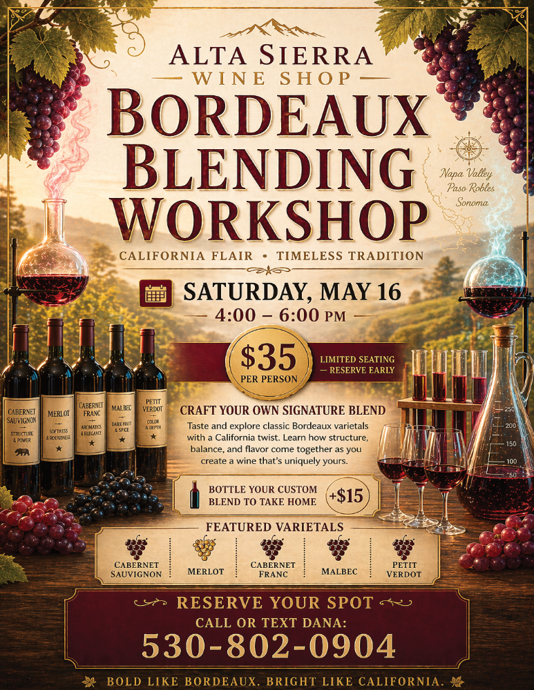 Upcoming Events at the Alta Sierra Wine Shop